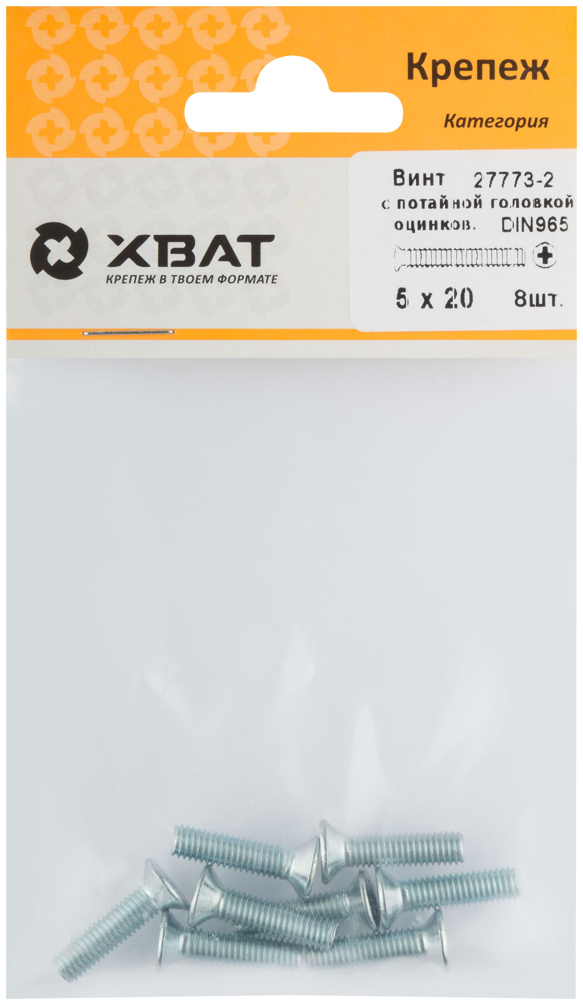Винт с потайной головкой с полной резьбой оцинкованный DIN 965 5 х 20 (фасовка 8 шт.)