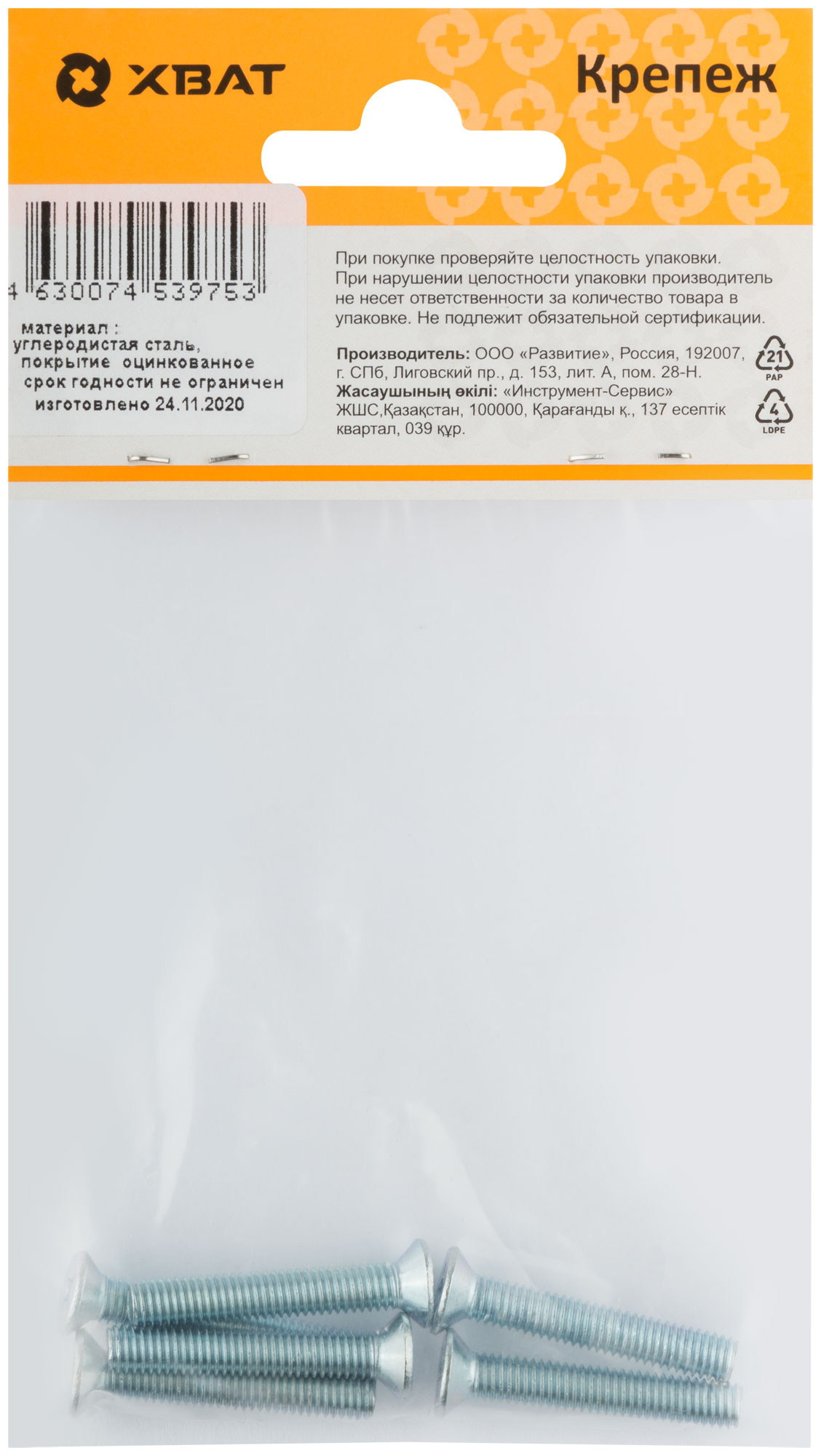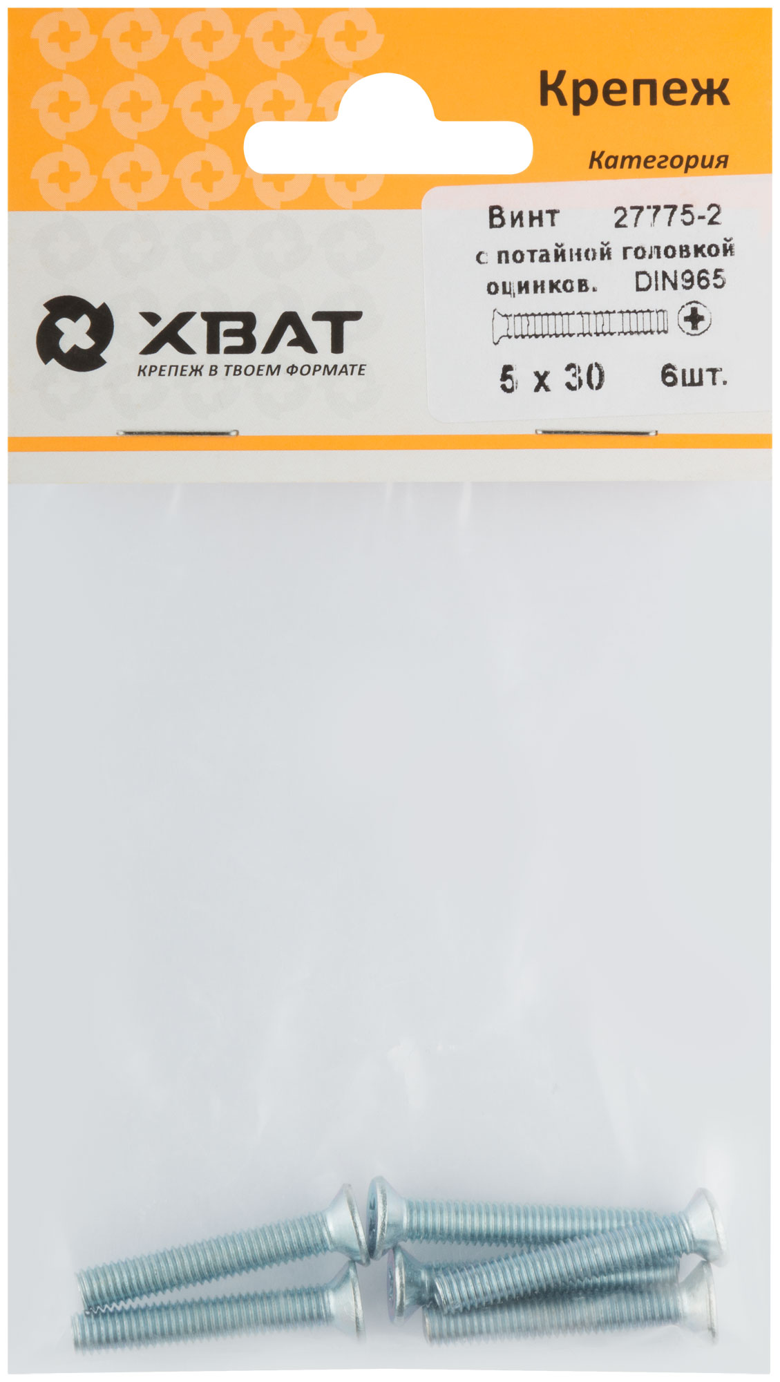 Винт с потайной головкой с полной резьбой оцинкованный DIN 965 5 х 30 (фасовка 6 шт.)
