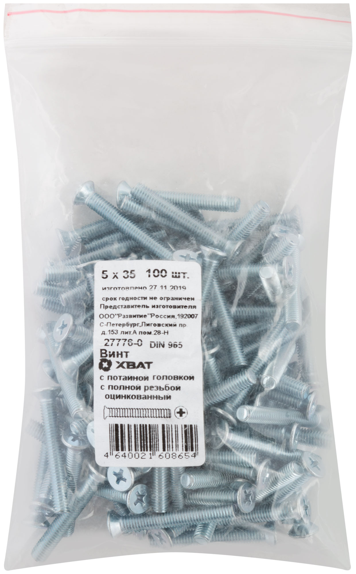 Винт с потайной головкой с полной резьбой оцинкованный DIN 965 5 х 35 100 шт. Фасовка