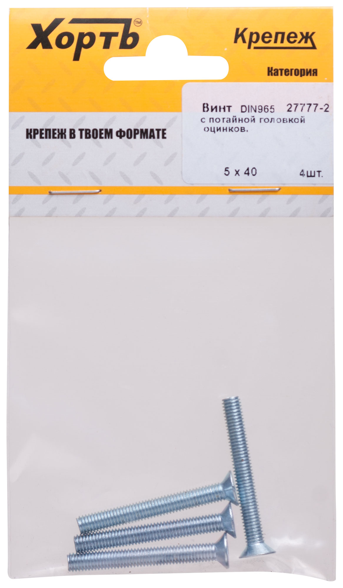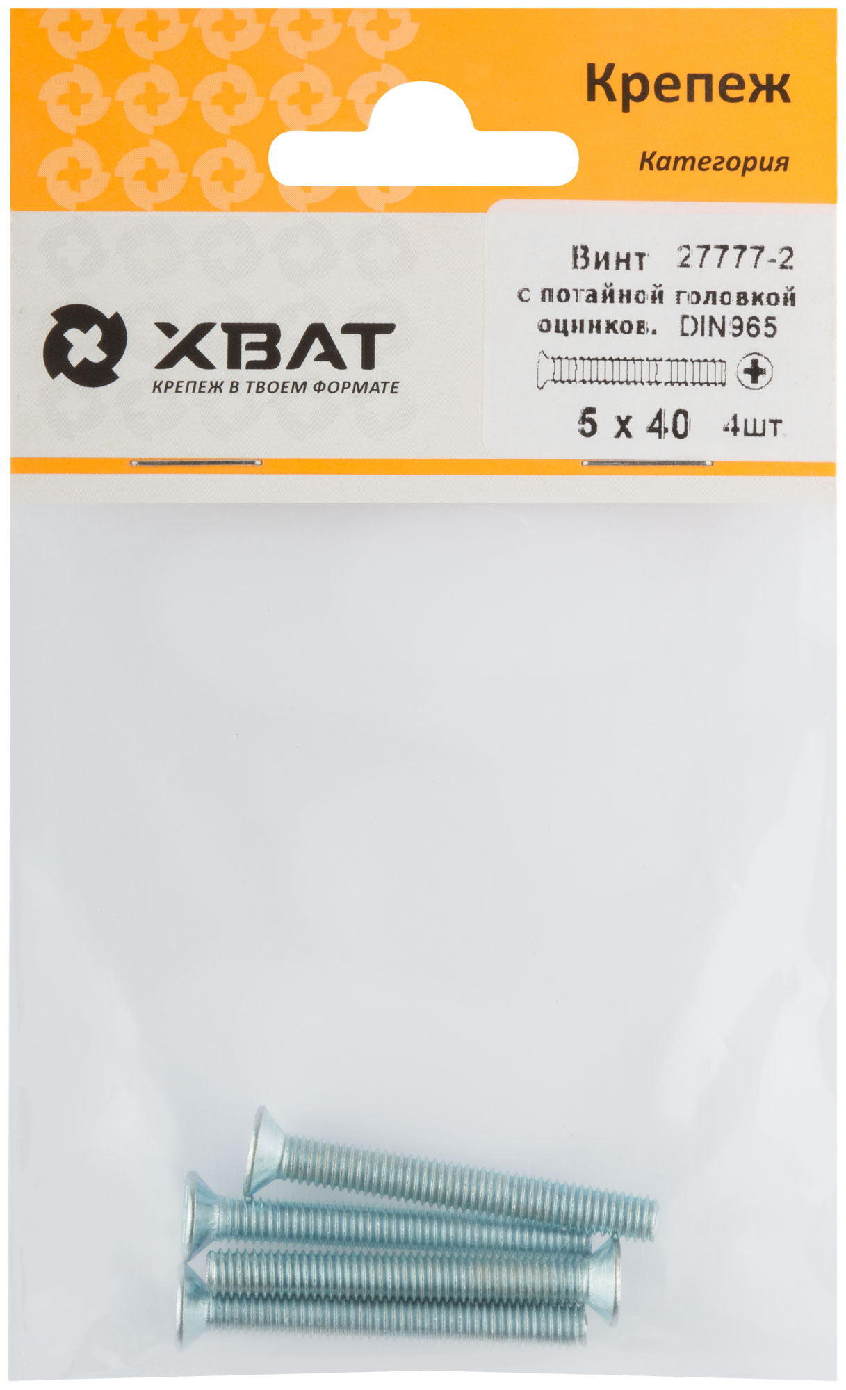 Винт с потайной головкой с полной резьбой оцинкованный DIN 965 5 х 40 (фасовка 4 шт.)