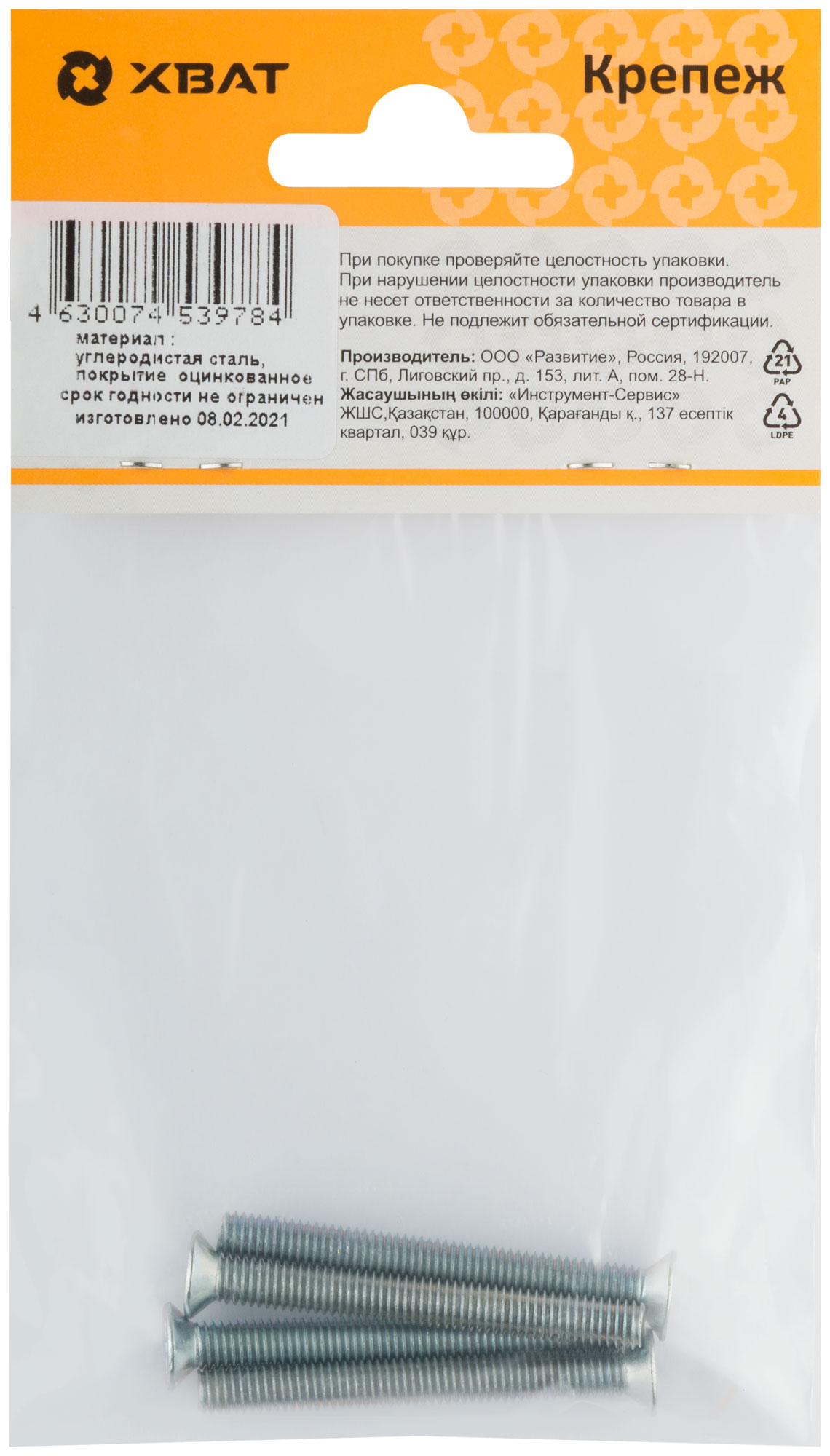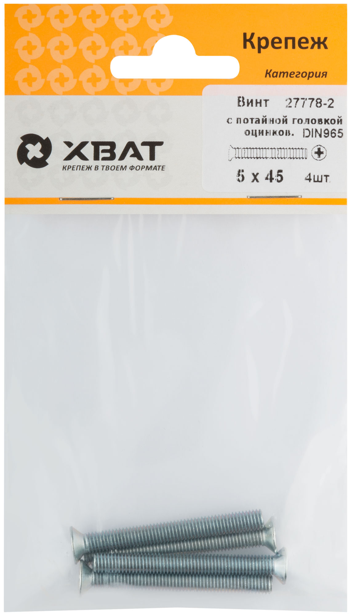 Винт с потайной головкой с полной резьбой оцинкованный DIN 965 5 х 45 (фасовка 4 шт.)