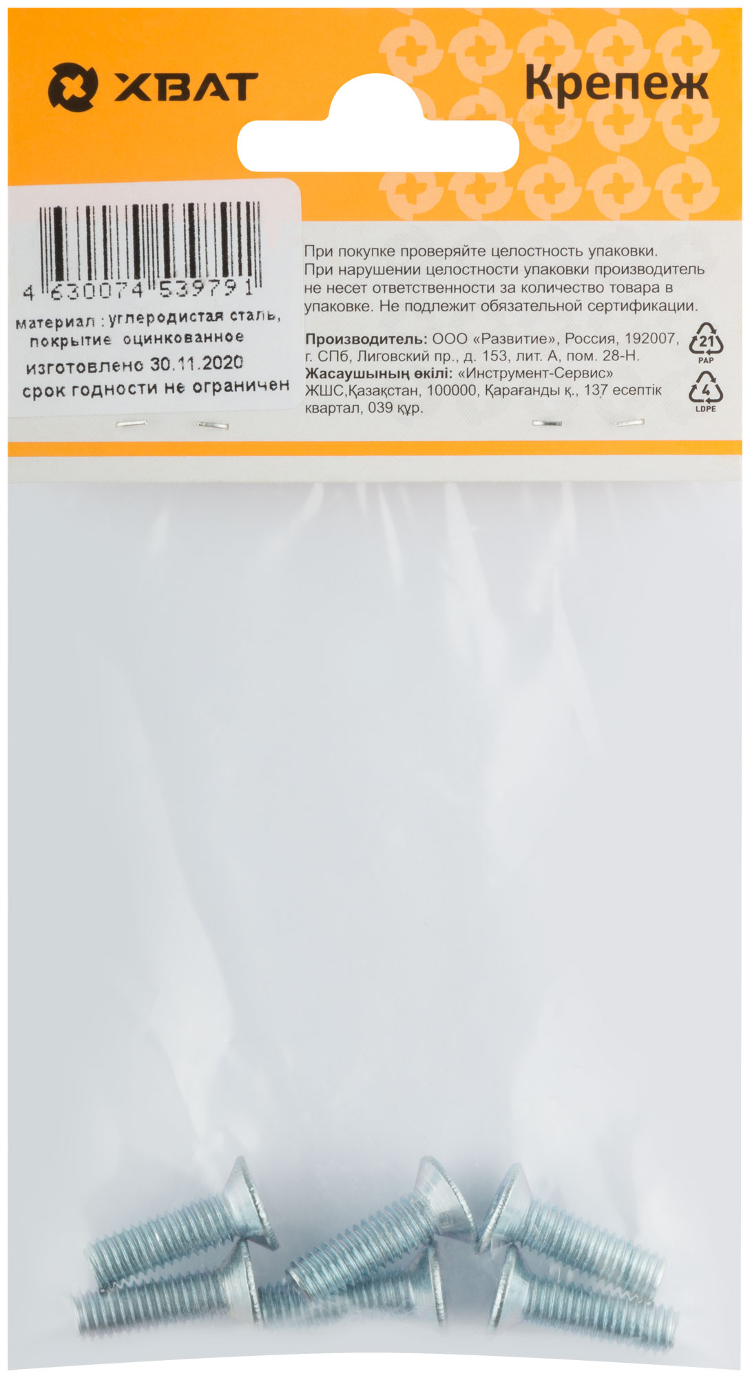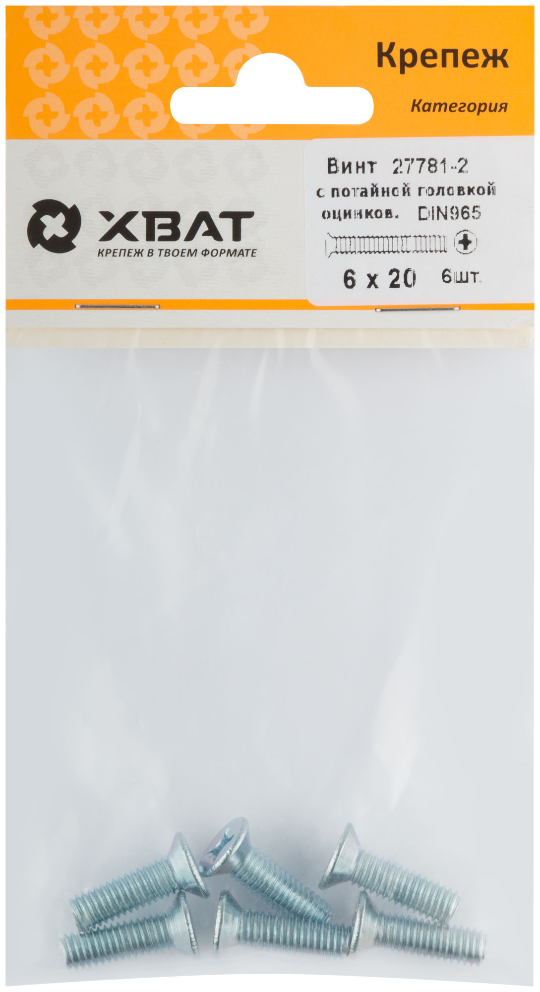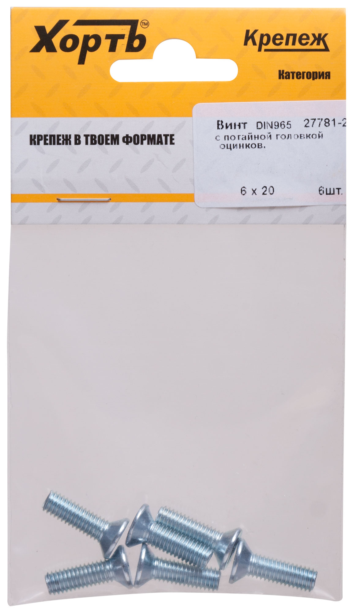 Винт с потайной головкой с полной резьбой оцинкованный DIN 965 6 х 20 (фасовка 6 шт.)