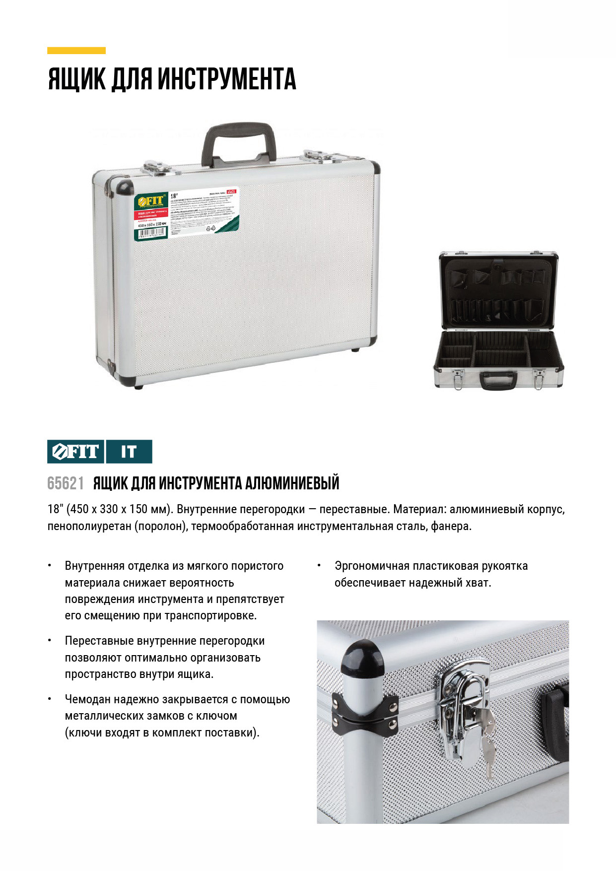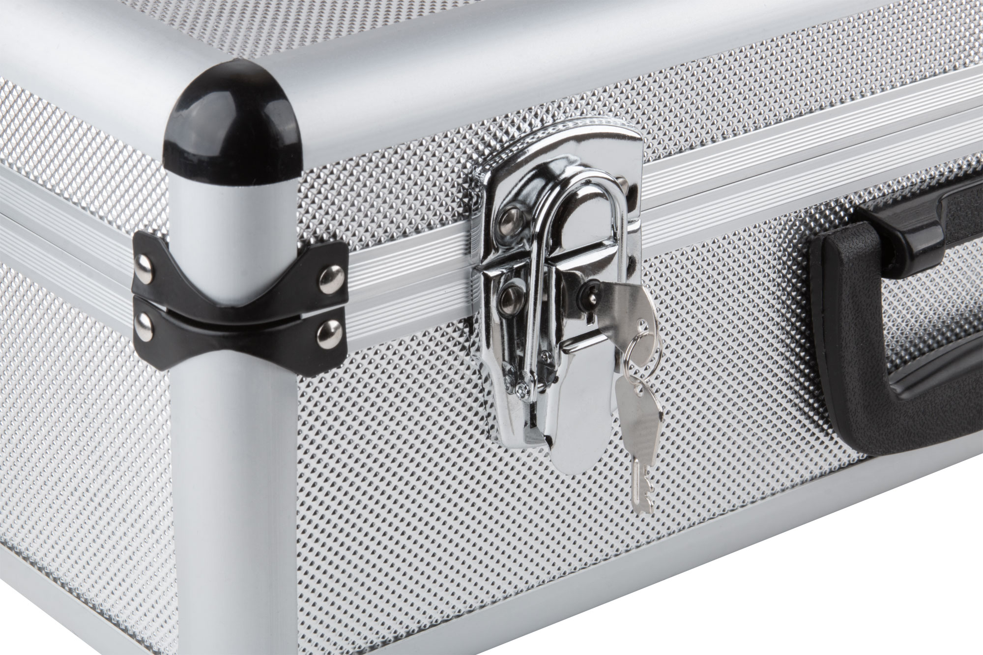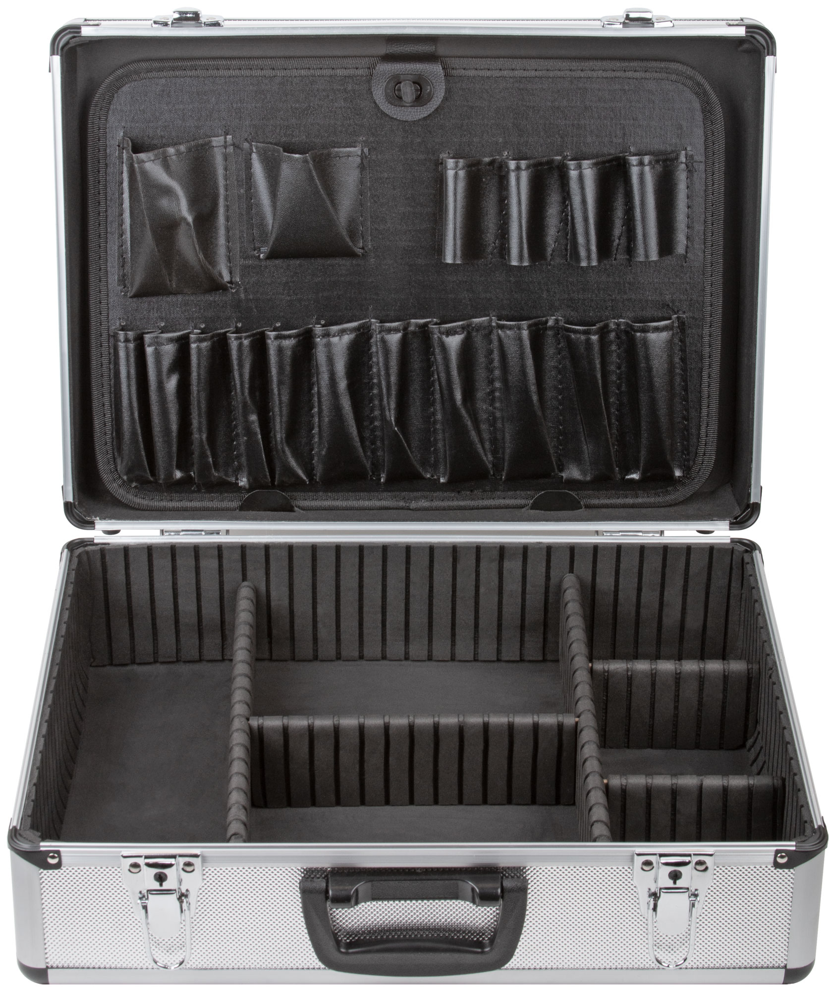 Алюминиевый. Внутренние перегородки – переставные. Отделка из мягкого пористого материала для обеспечения более бережного хранения инструмента.