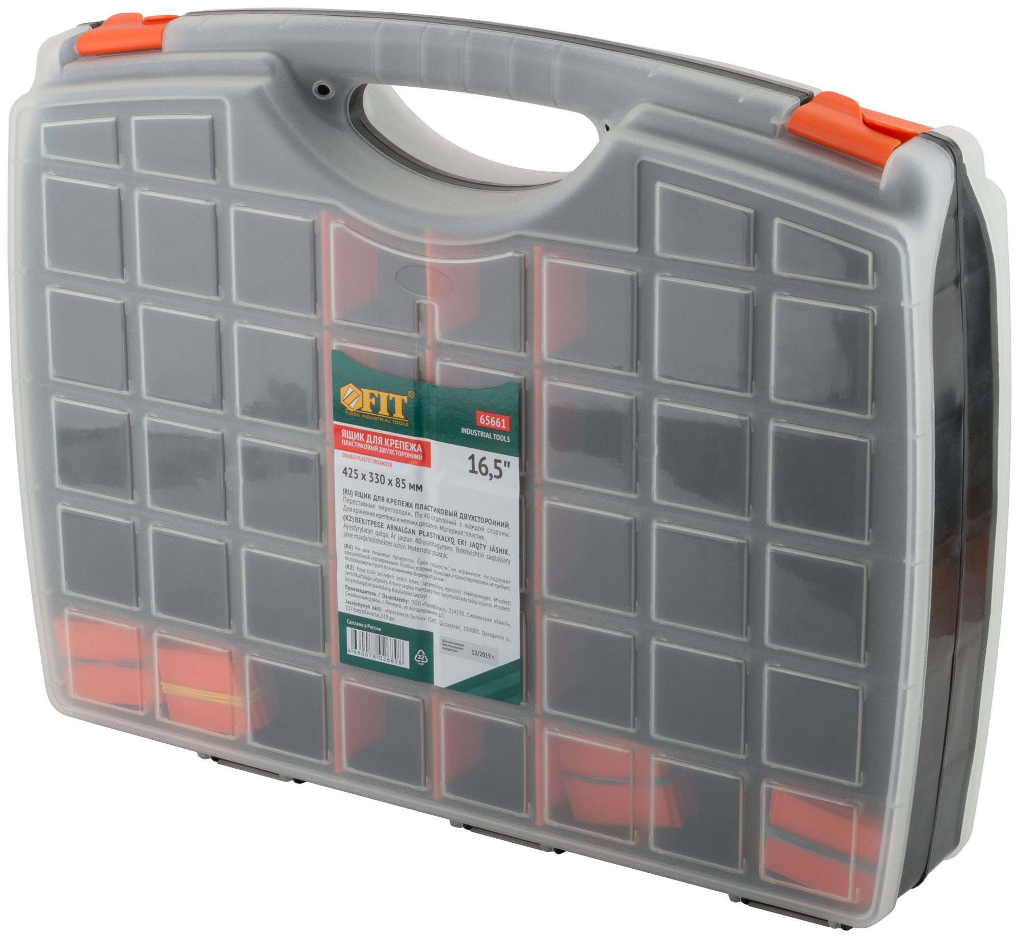 Пластиковый. Двухсторонний. Переставные перегородки. 65660 - по 24 отделения с каждой стороны. 65661 - по 40 отделений с каждой стороны