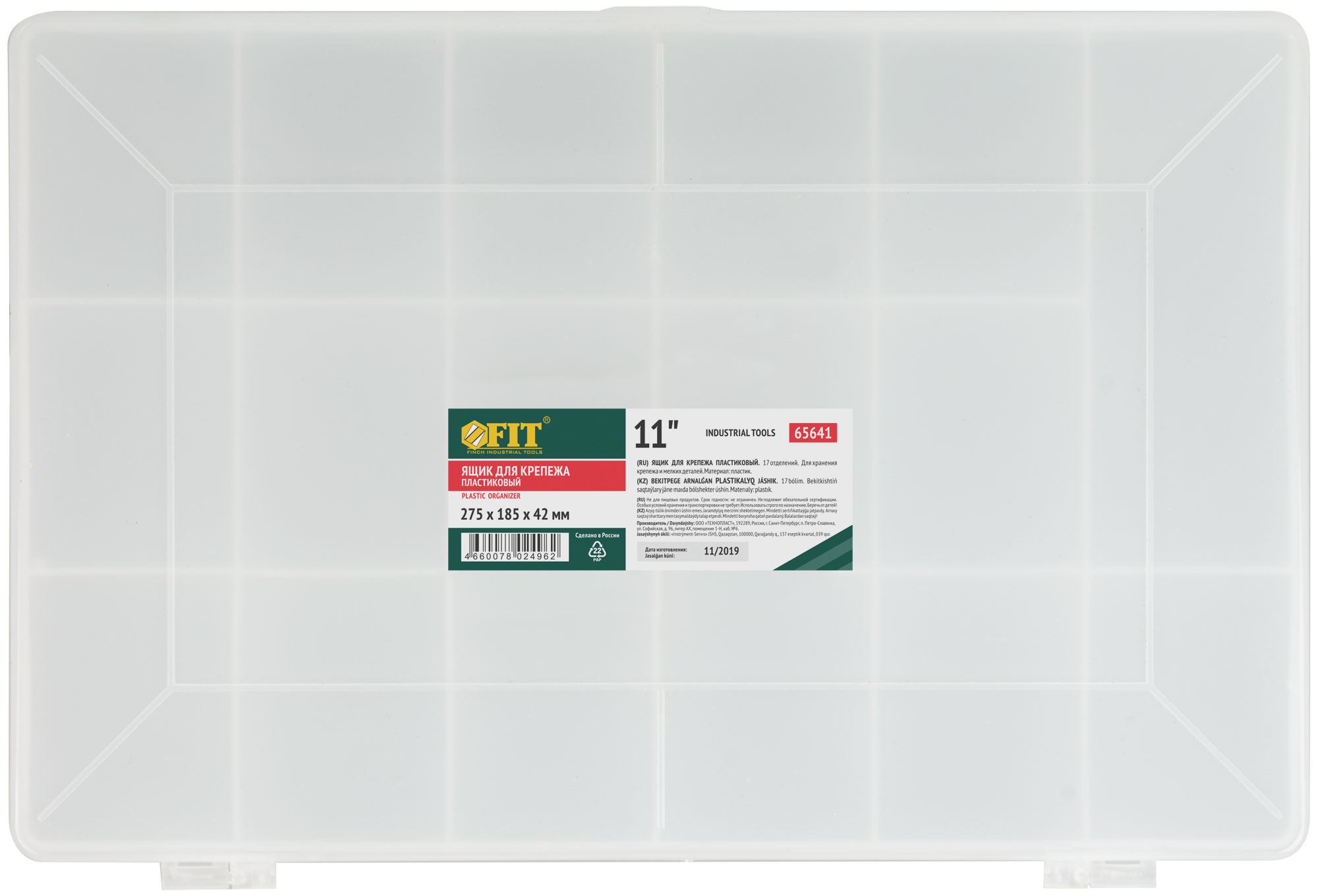 Ящик для крепежа (органайзер) прозрачный 11" ( 275х185х42 мм )