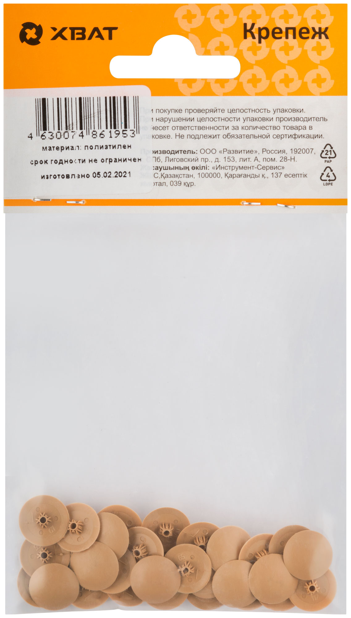 Заглушки для шурупов светло бежевый (фасовка 30 шт.)