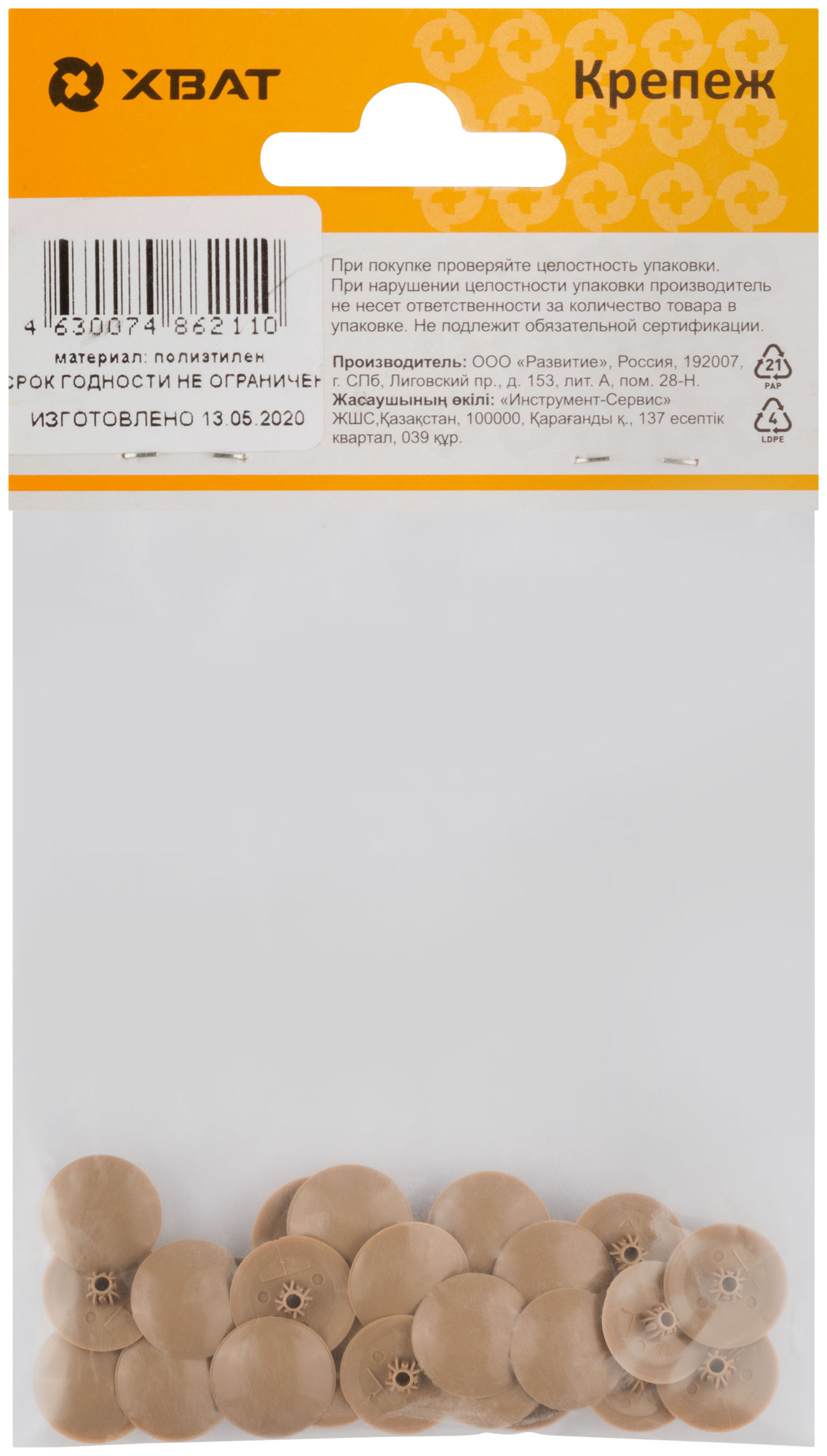Заглушки для шурупов темно бежевый (фасовка 30 шт.)