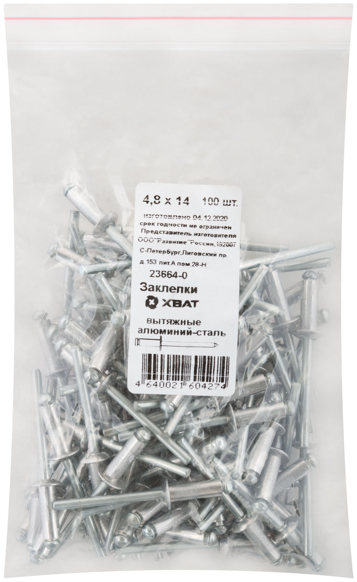 Заклепки вытяжные комбинированные, алюминий-сталь 4,8 х 14 100 шт. Фасовка