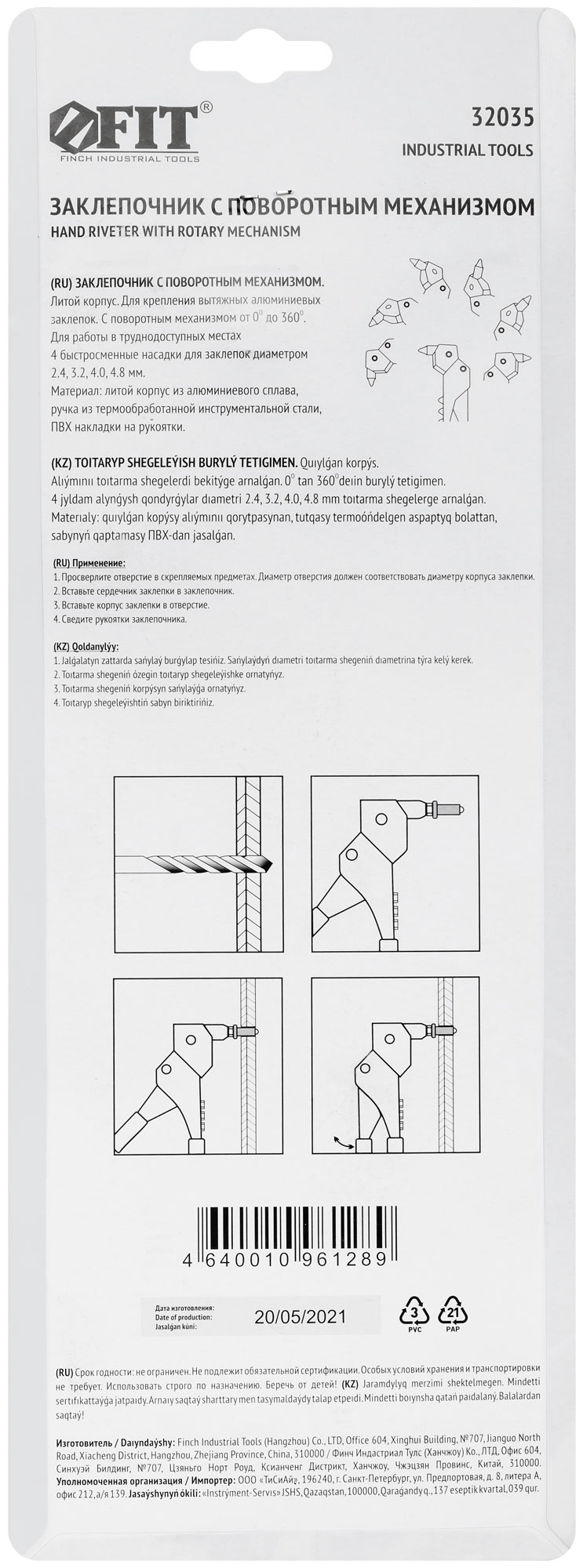 Для крепления вытяжных алюминиевых заклёпок c поворотным механизмом 0-360°. 4 быстросменных насадки, пружинный рычаг для выброса сердечника от заклепок, рукоятка с виниловым покрытием. Для профессионального использования. Упаковка: блистер.