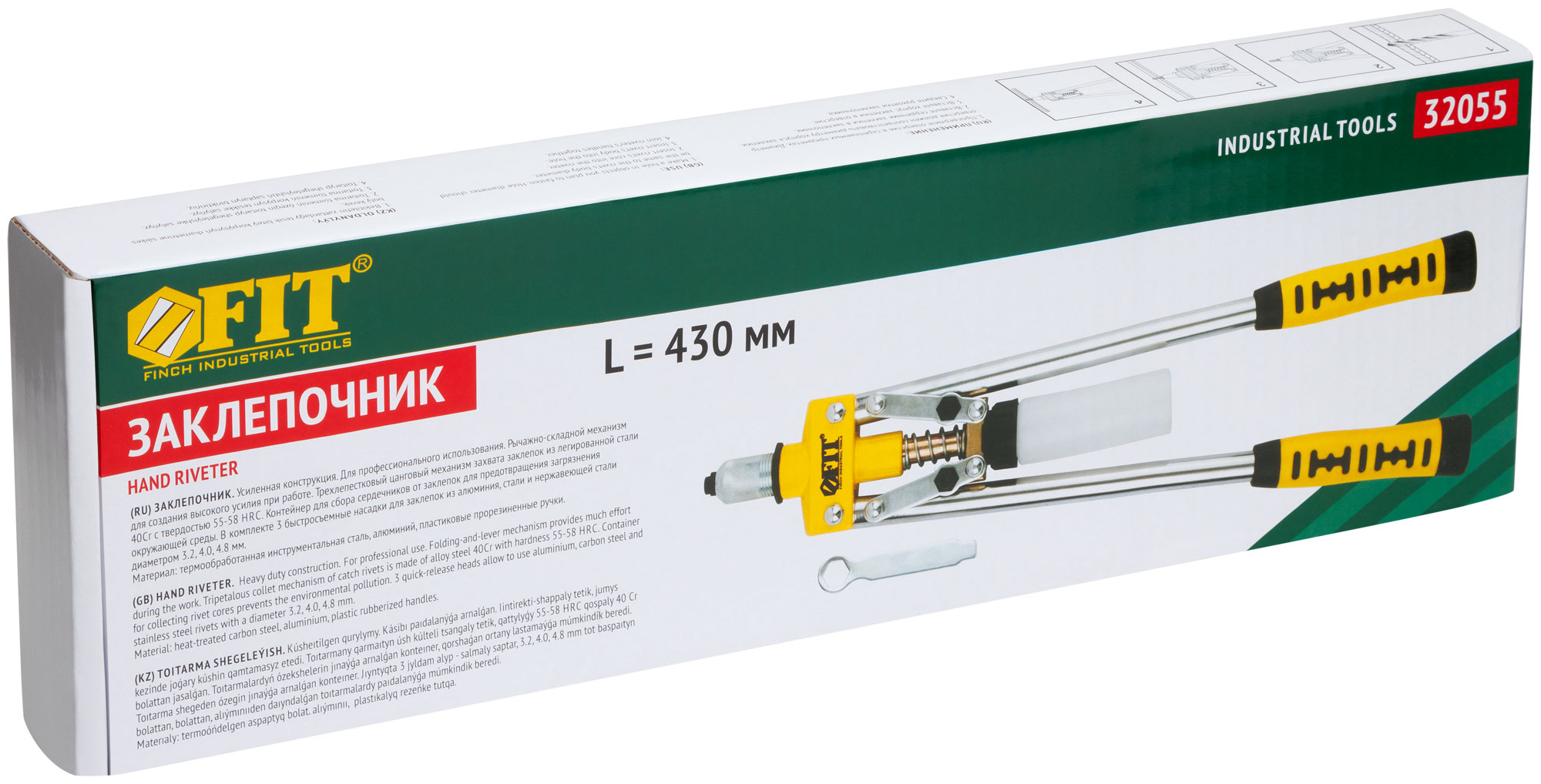 Заклепочник усиленный с длинными ручками, пластиковый контейнер 3,2-4,8 мм (430 мм)